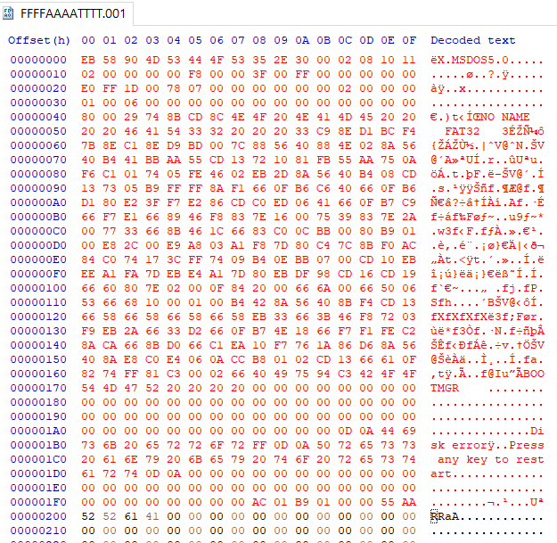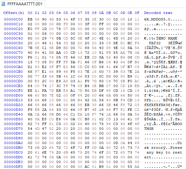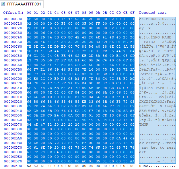여기 BR을 복사해서 Fix the Disk!!!!로 도배되어있던 섹터 0 영역에 삽입하면 된다.