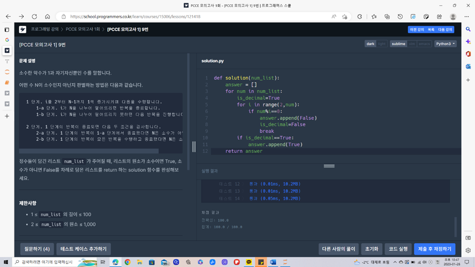 #9 중) 소수 판별하기 (PCCE 모의고사1-9)