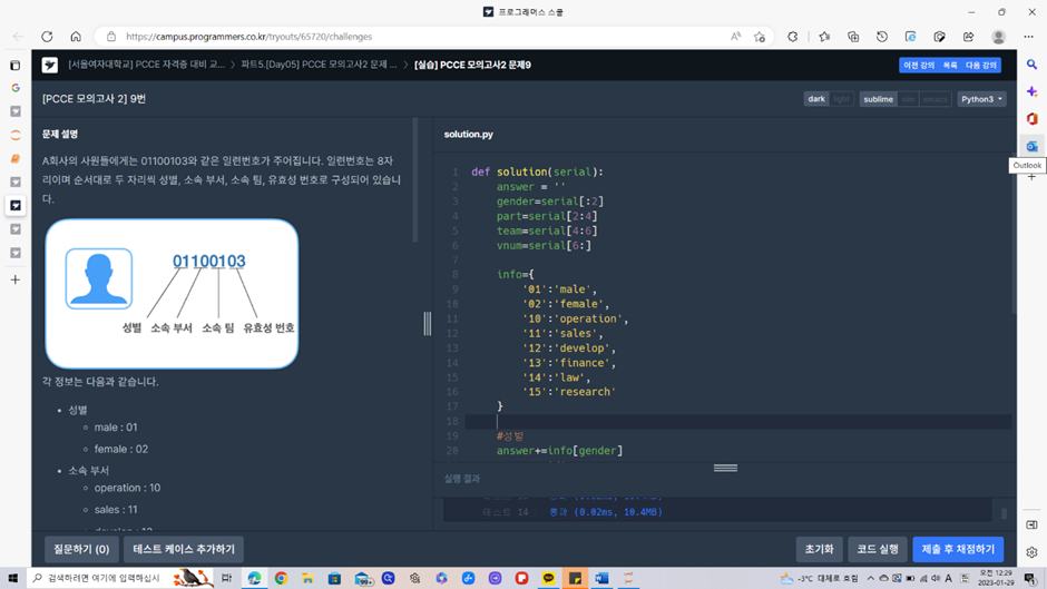 #11 중) 일련번호 해석하기 (PCCE 모의고사2-9)
